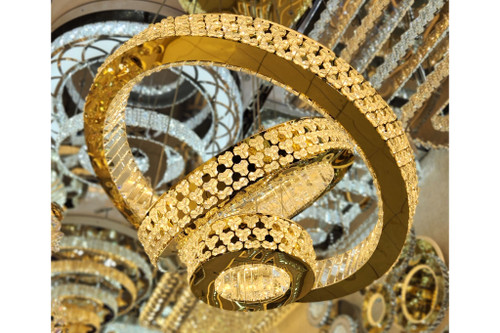 لوستر کریستالی آویز ۳ حلقه ۲۰+۴۰+۶۰ با کریستالهای نگینی