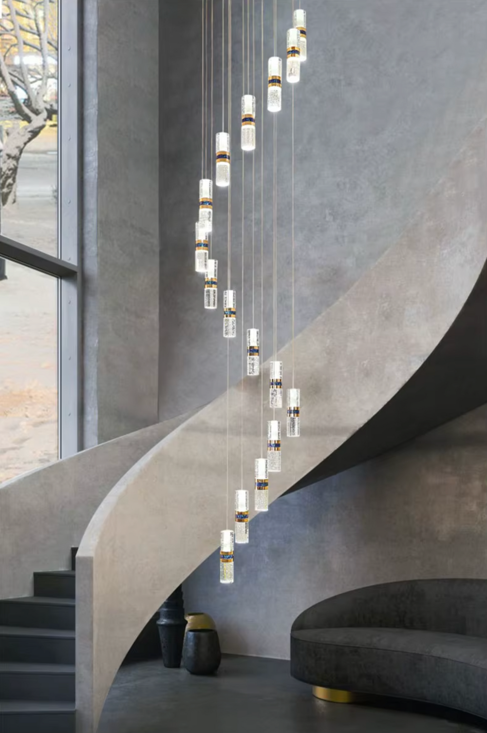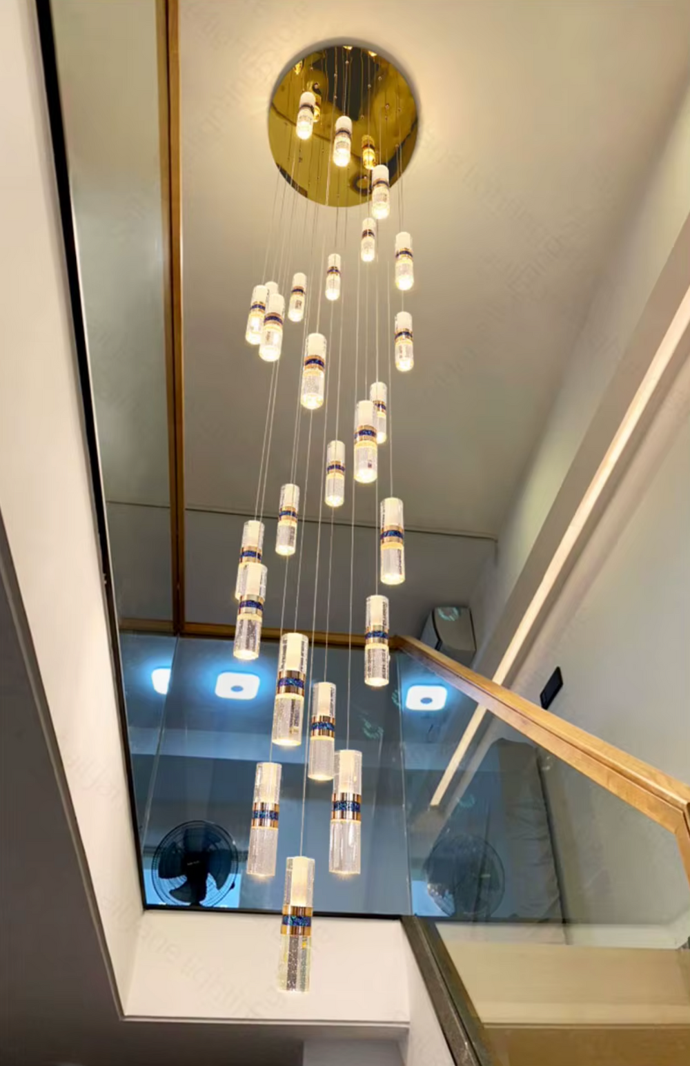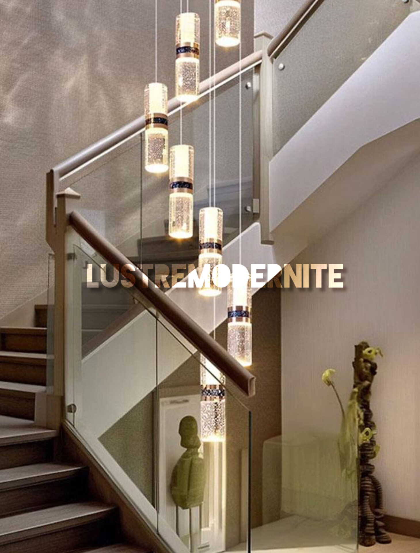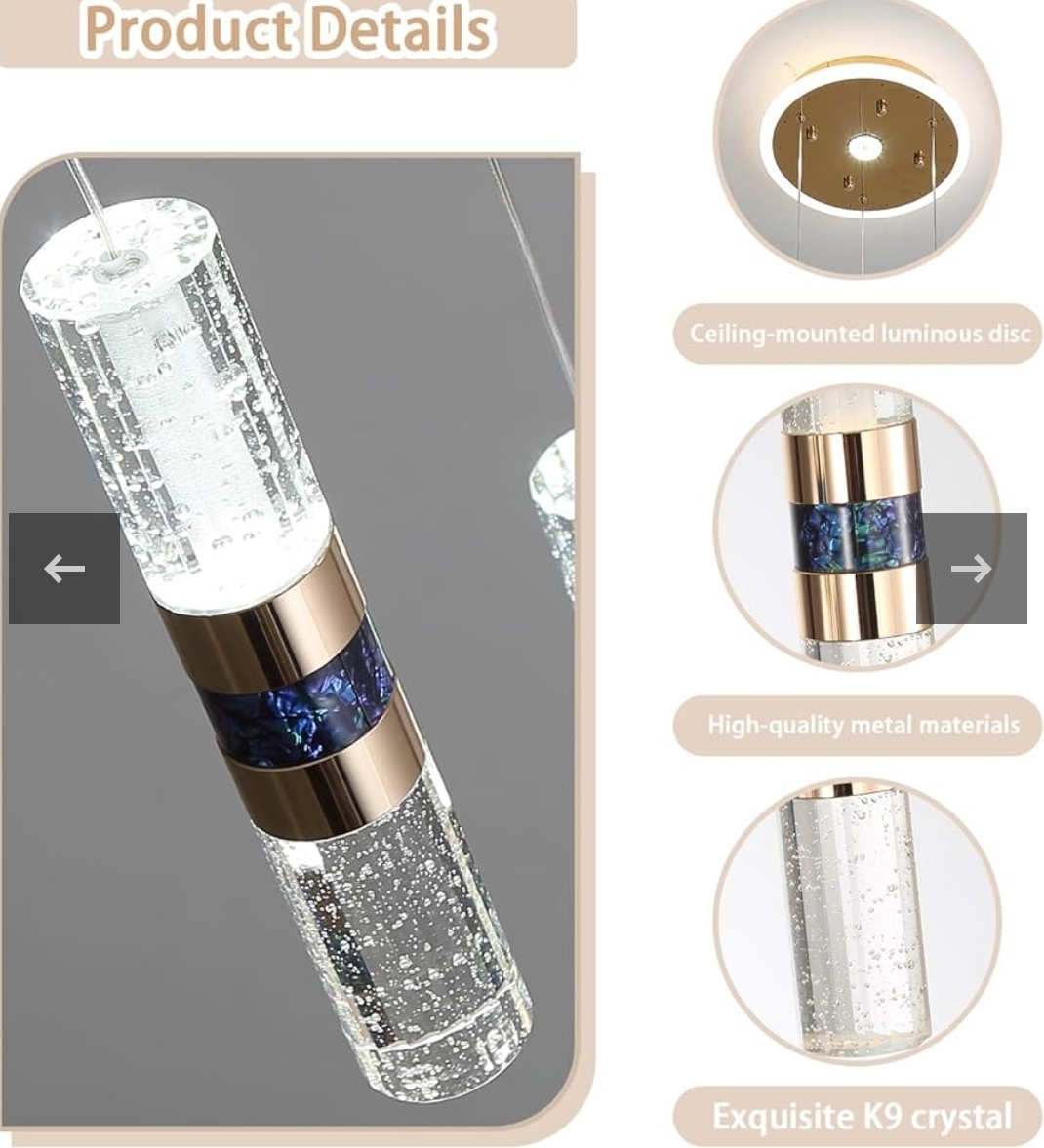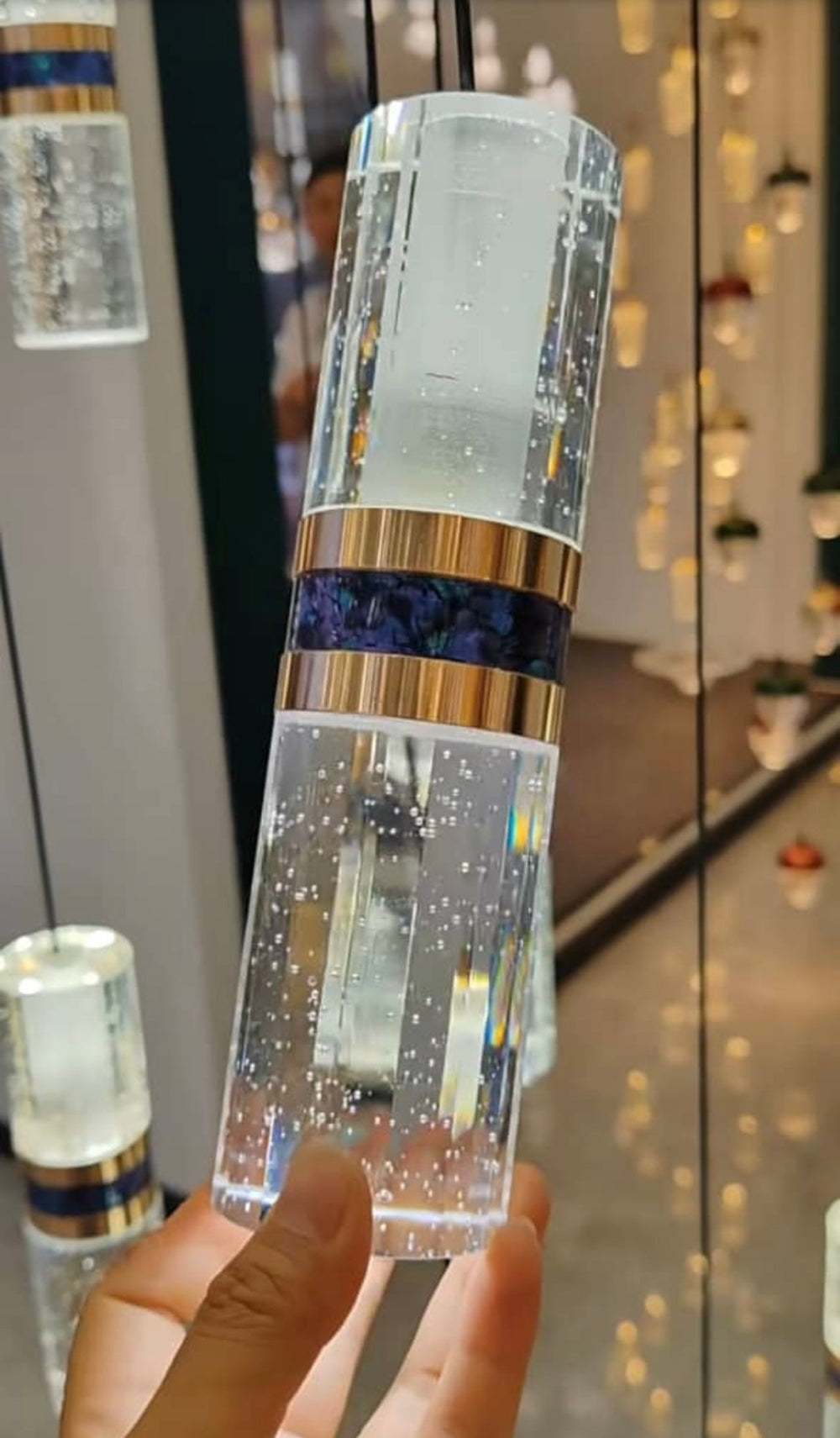 لوستر آویز مدل استوانه با تزیین سنگ آبالون
