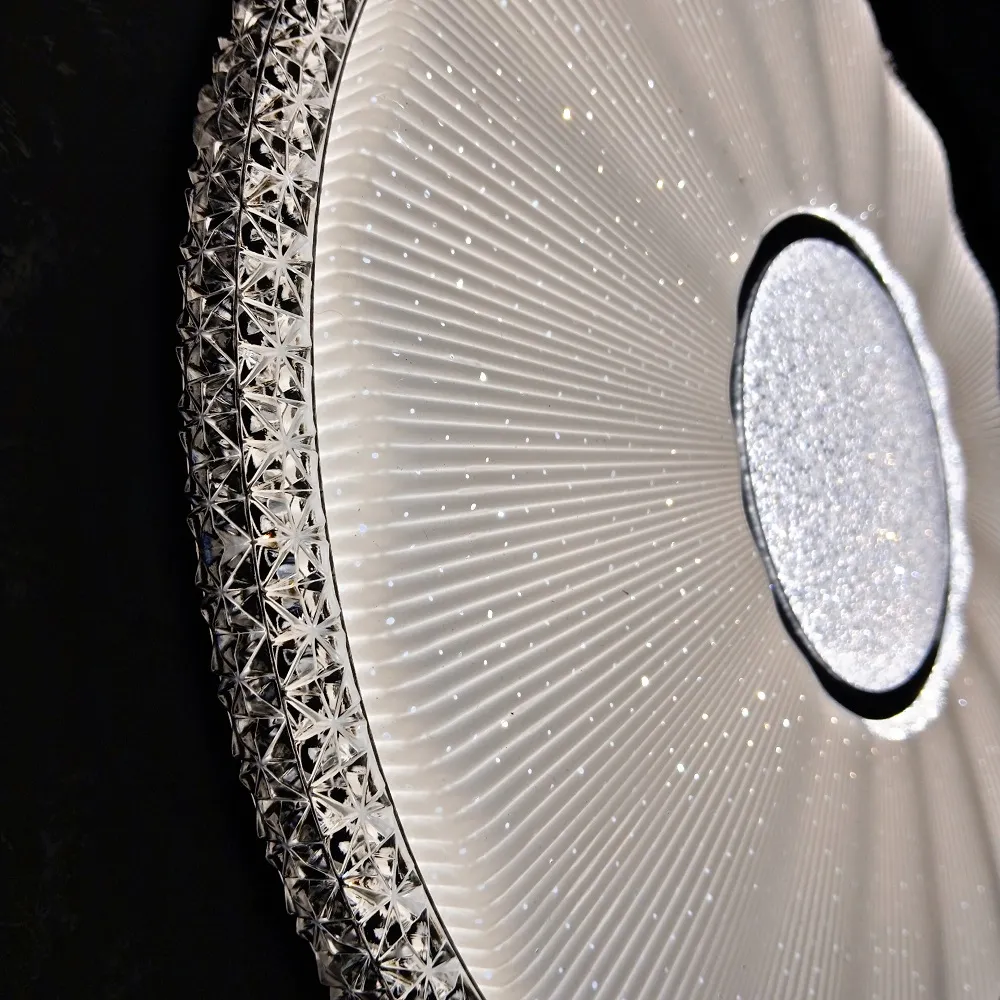 بدنهی چراغ از متریال مقاوم و باکیفیت ساخته شده و لایهی بیرونی آن با کریستالهای ریزتر و ظریفتر نسبت به مدلهای مشابه تزئین شده است.